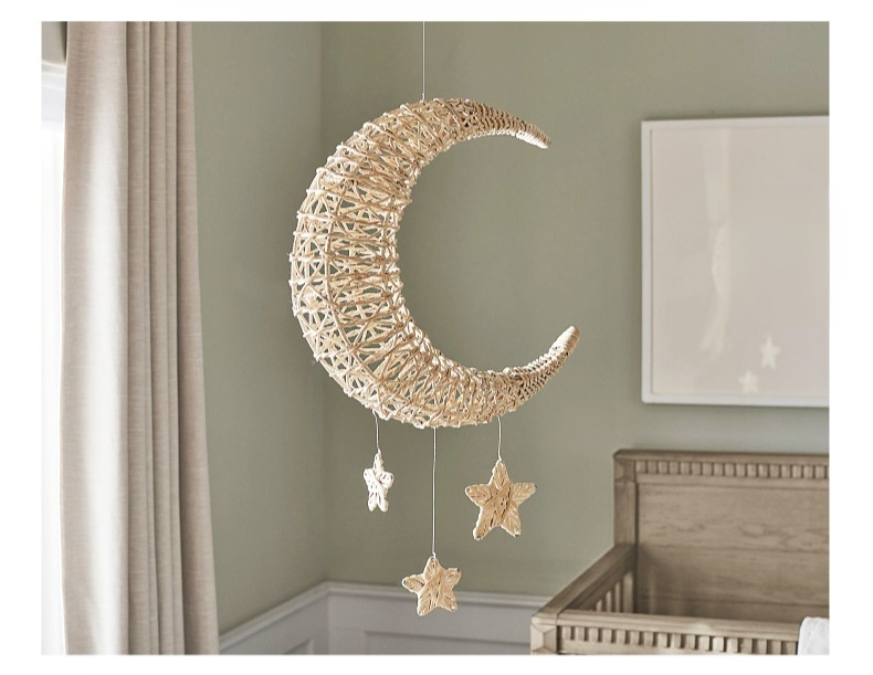 Adorno de luna y estrella de mimbre